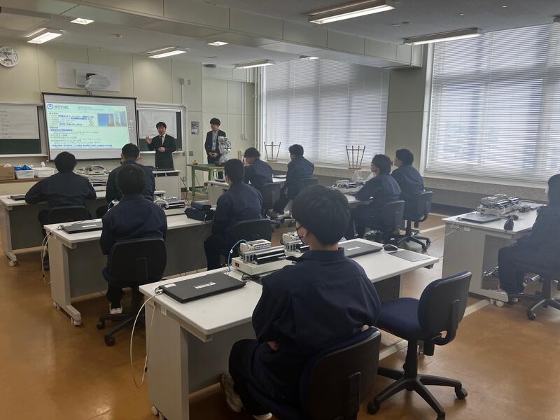 本校電気科2年生を対象に、株式会社NTT-ME様および株式会社さくら通建様による出前授業が実施されました。