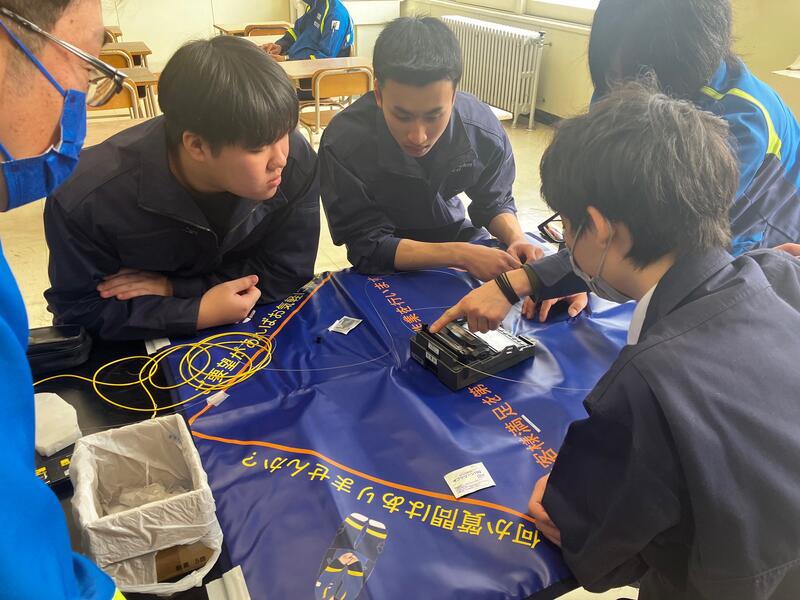 授業内容は「各社の業務概要」「光ファイバ接続・試験」「VR危機体感」の3項目で、生徒たちは専門的な技術に直接触れる貴重な機会となりました。