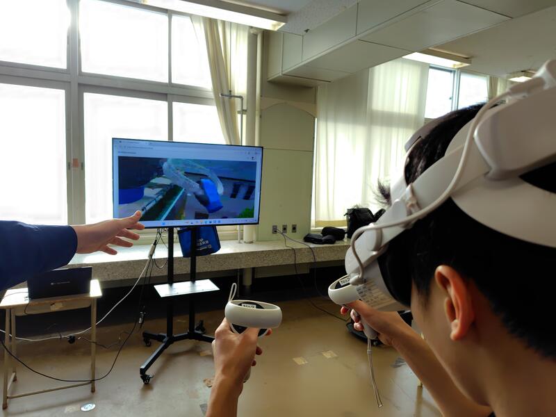 特に「VR危機体感」では、電柱上部での作業を仮想空間で体験し、不安全な作業を行った場合には上空から墜落するシミュレーションが行われました。生徒たちは、作業時の安全確認がいかに重要であるか,身をもって実感している様子でした。